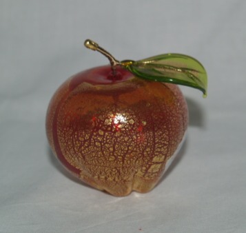 Murano appel met bladgoud en rood